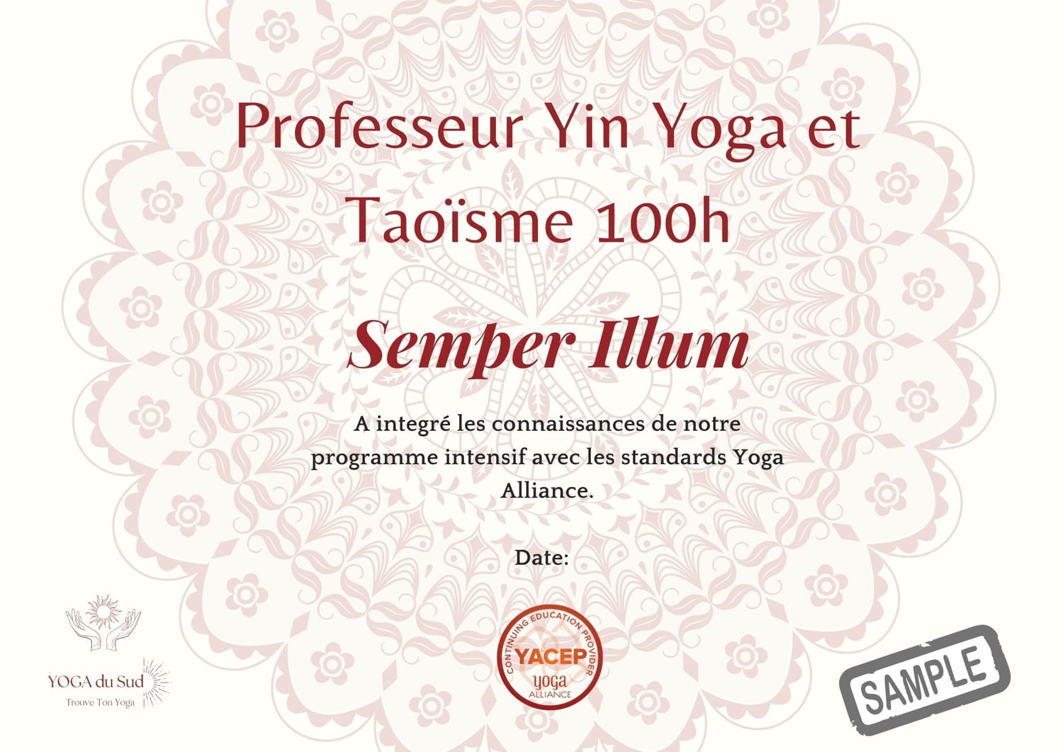Diplôme Yoga Alliance YACEP 100h